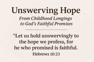 We thank You that Your promises never fail. Teach us to hold unswervingly to the hope we profess, trusting not in our own desires but in Your perfect timing and provision. Strengthen us to encourage one another, to worship together with joy, and to live as witnesses of Your faithfulness. May our lives reflect the confident assurance we have in You.